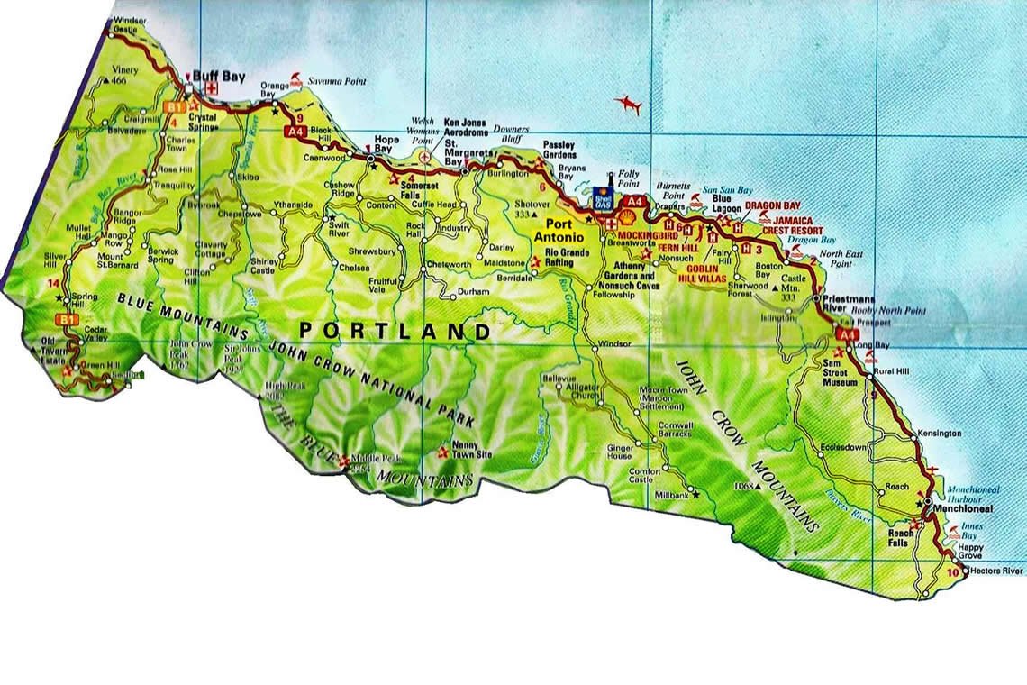 Portland, a combination of the parish of St. George and part of St. Thomas, was named after the Duke of Portland who was a Governor of Jamaica between 1722 and 1726. The Maroons who lurked in the Blue and John Crow Mountains were adamant that Europeans would not settle in Portland.